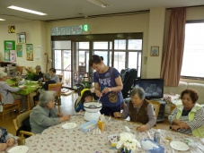 お昼までの空き時間に仮装した職員の登場に、利用者の皆さんも思わずびっくり!