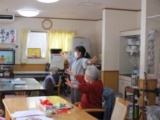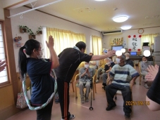 輪になって踊ります。完璧・・・ではないです、職員も!