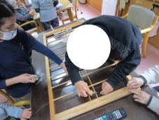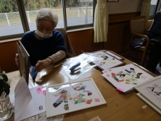 雑誌の切り抜きを貼りつけ、「福」の字に