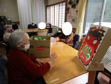 毎年恒例、ギュギュっと丸めた新聞紙を豆に見立てた
